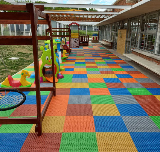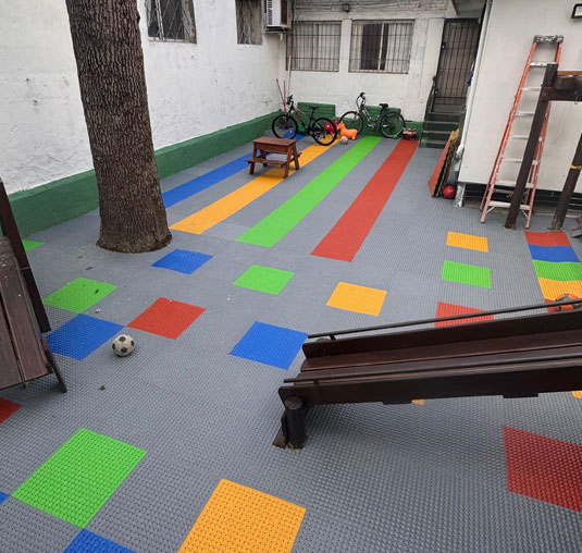 Es un piso modular y flexible diseñado para la absorción de fuertes impactos, gracias a su diseño exclusivo que combina flexibilidad y plasticidad, proporcionando una superficie confortable para espacios interiores y/o exteriores.